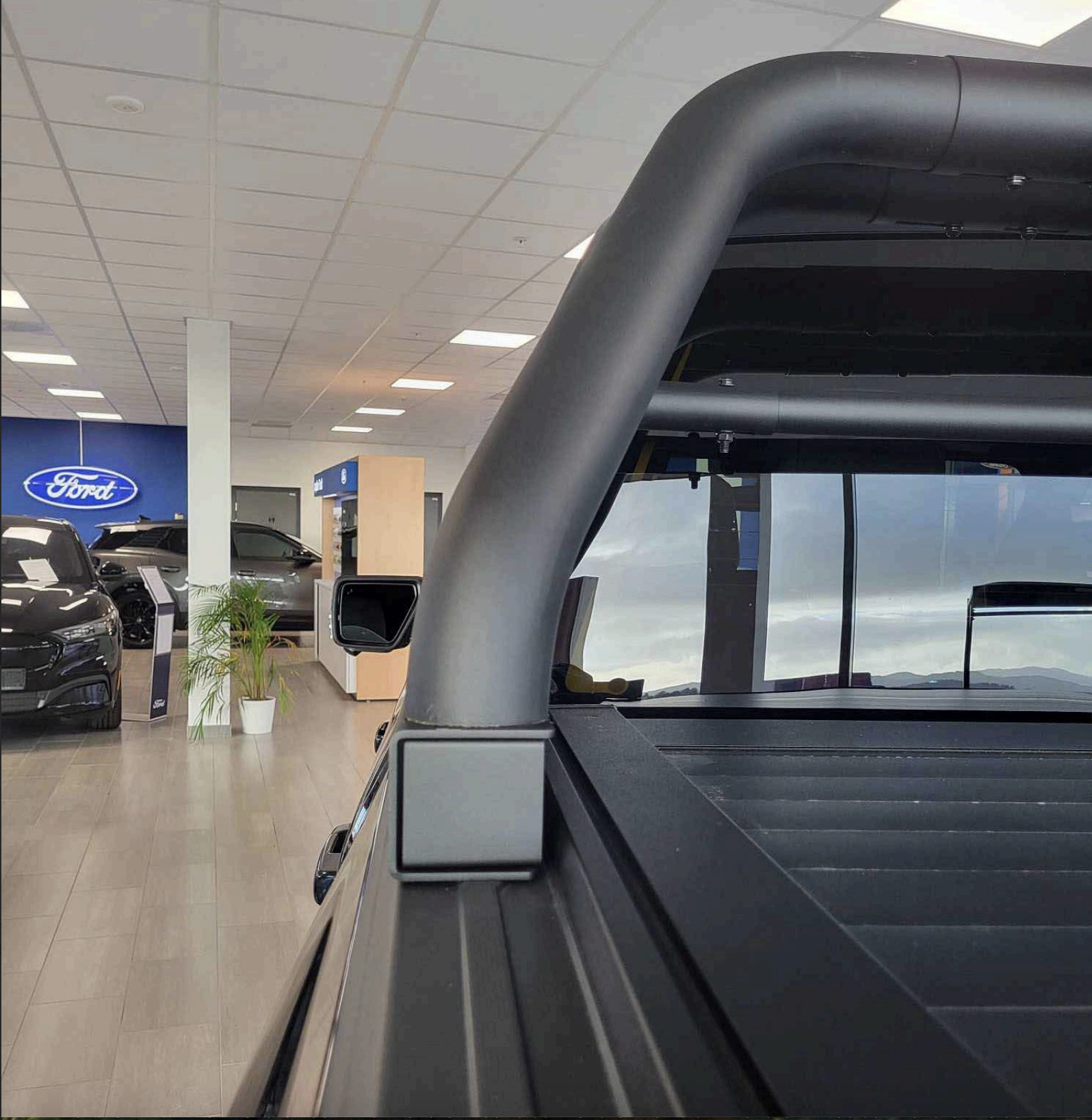 Denne har montering oppå karmen, så kan benyttes sammen med Ford`s originale alu rulletrekk med skinne. Den er justerbar i bredden, så den kan benyttes både på Ford, Chevrolet og Ram. ( Full size ) For de som har leasing bil etc, og ikke kan/ vil bore i bilen, så er denne justerbar i bredden, så den kan også monteres med skinnebolter.
